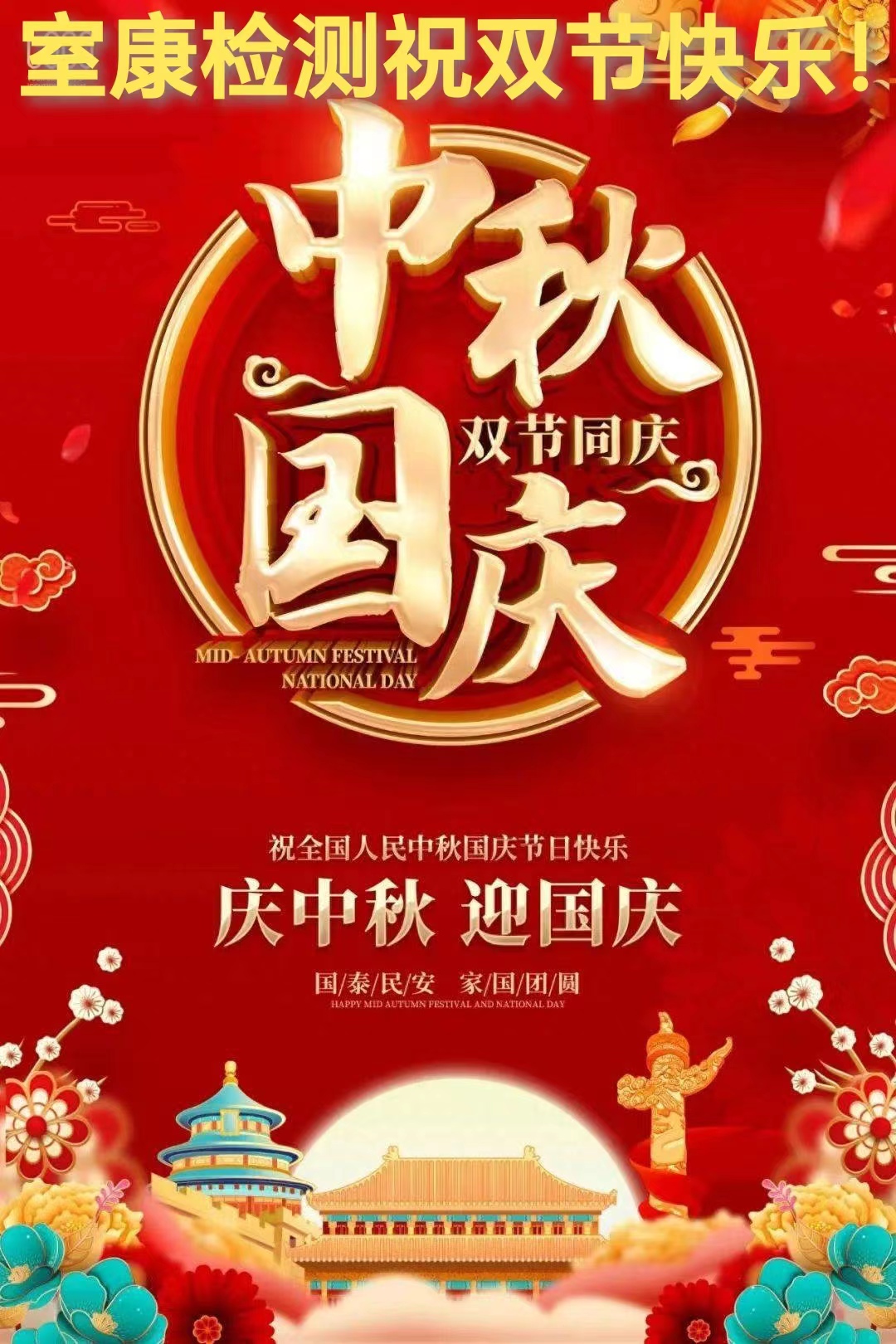 情满中秋月,家国共团圆,室康检测祝中秋国庆双节快乐!